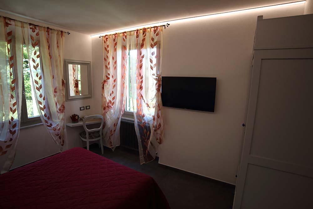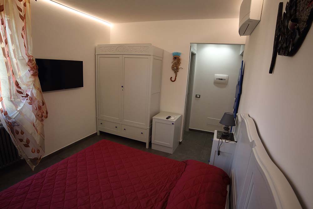 Room no. 3 reminds the colours of Ligurian stone and of the sunsets. The wide bathroom picturesquely reminds the colours of the stone that plunges into the sea and of the hill stones and offers you a wide shower, towels, bathrobes and the hairdryers. The floors is made of slate, the typical stone of the nearby town of Lavagna!